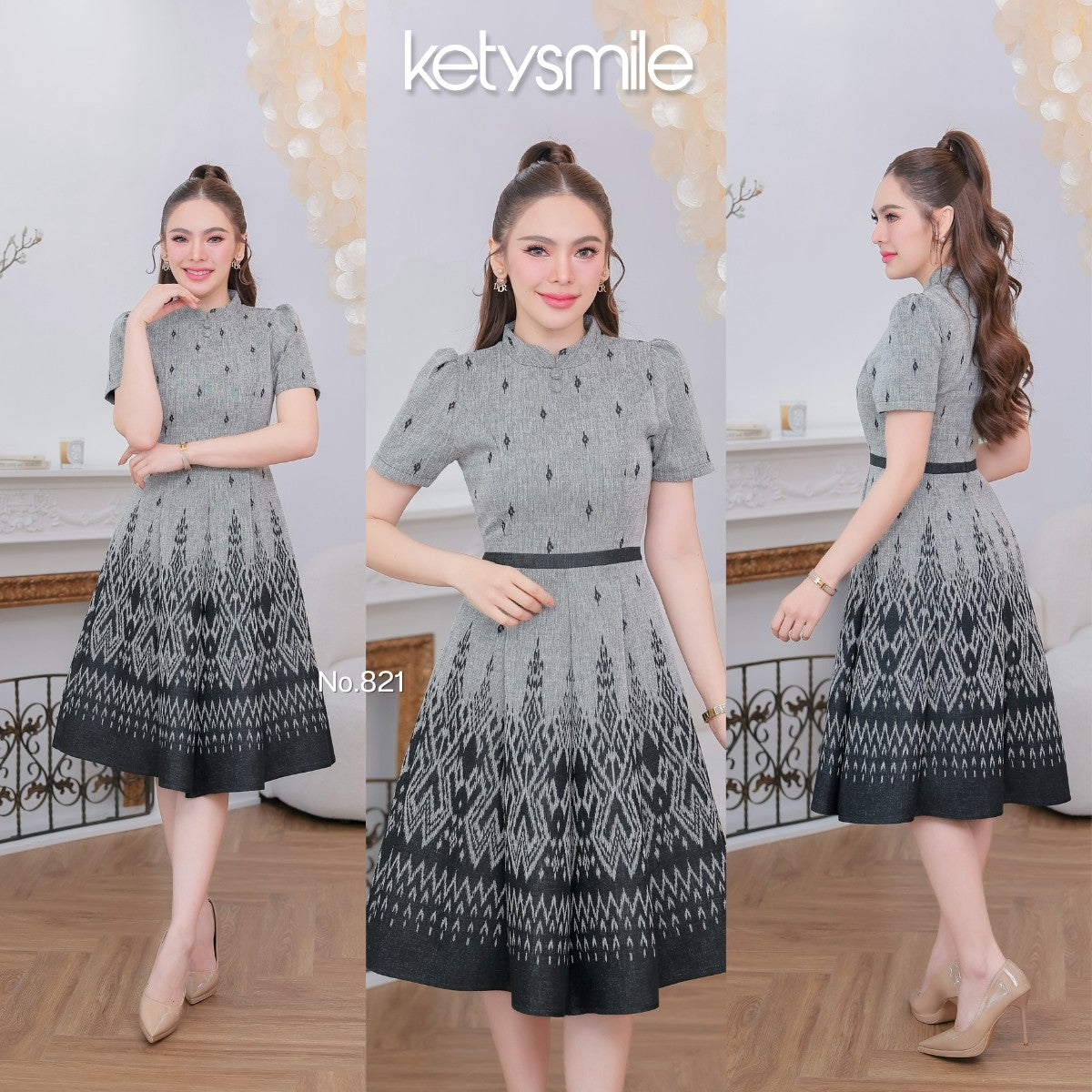 ✨ สีดำ ชุดเดรสผ้าทอลาย คอปีน แต่งขอบเอว กระโปรงบาน 8 ชิ้น งานสีดำที่สวยน่ารักสุดๆ พร้อมส่ง S-3Xl N821 ✨